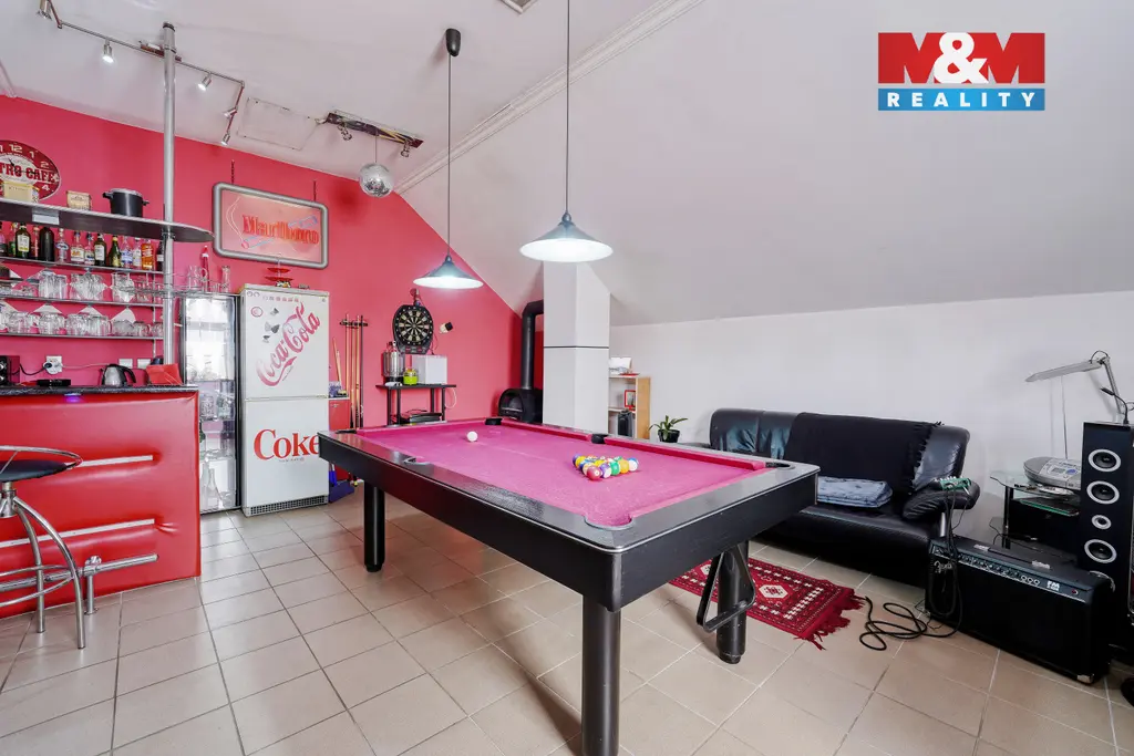 Velkou výhodou je hospoda s odděleným vchodem, prostorná garáž o výměře 91 m2, pergola pro příjemné posezení a venkovní bazén.