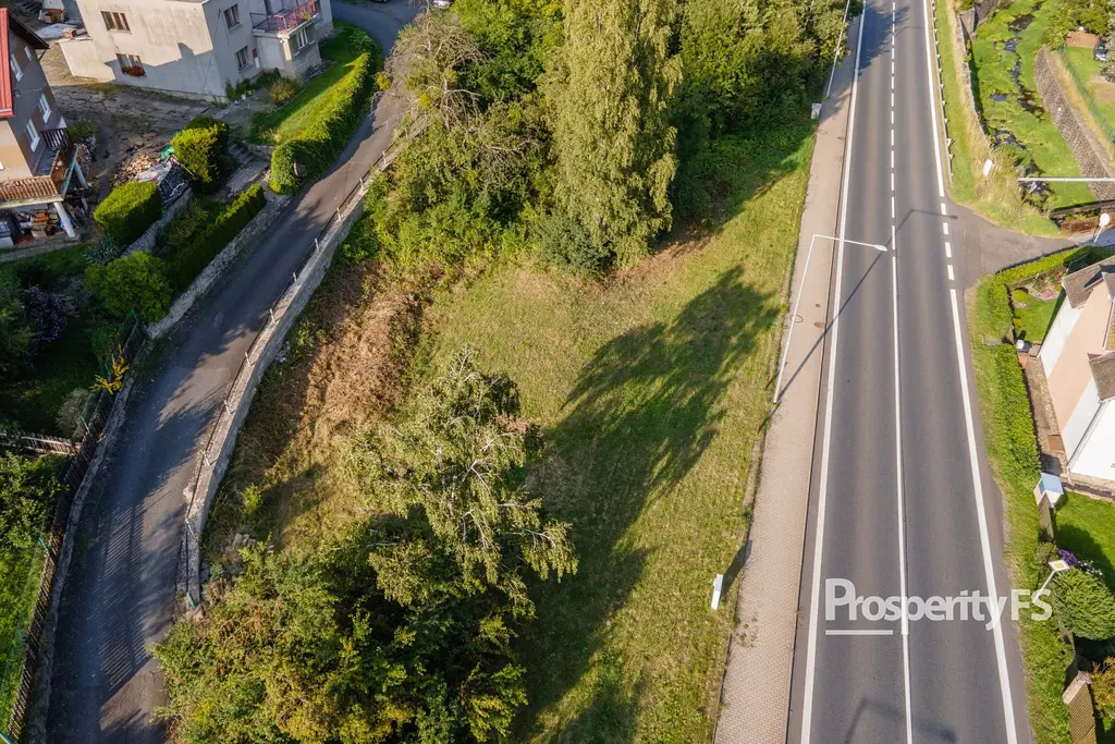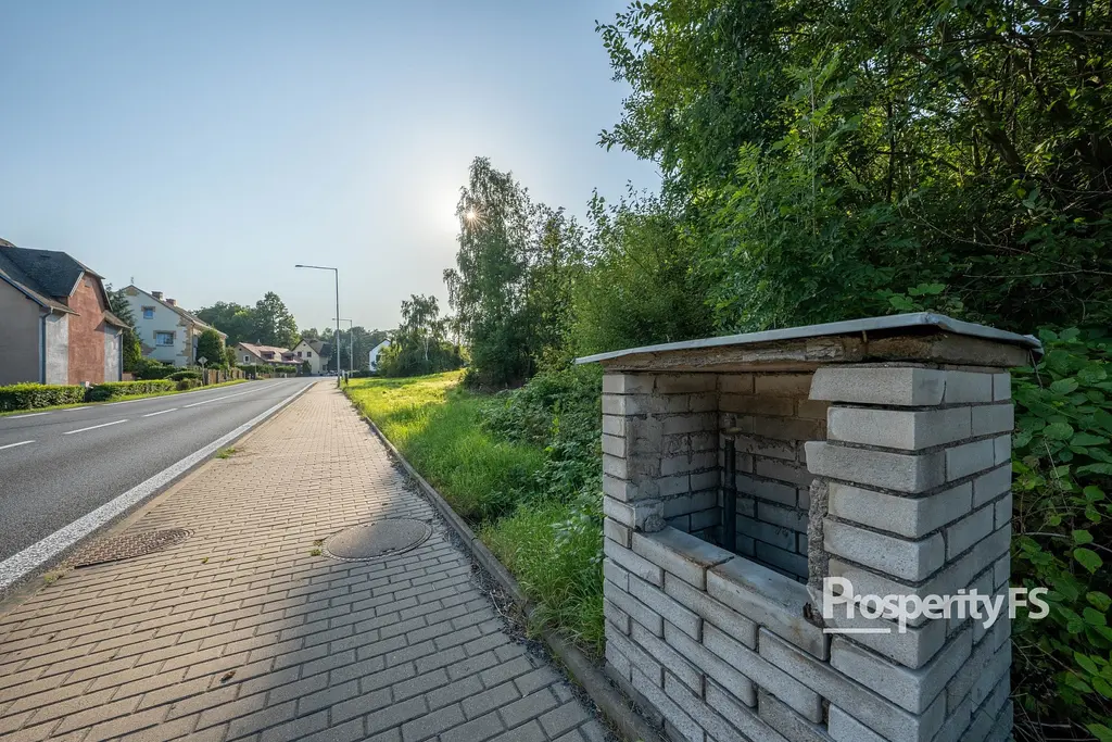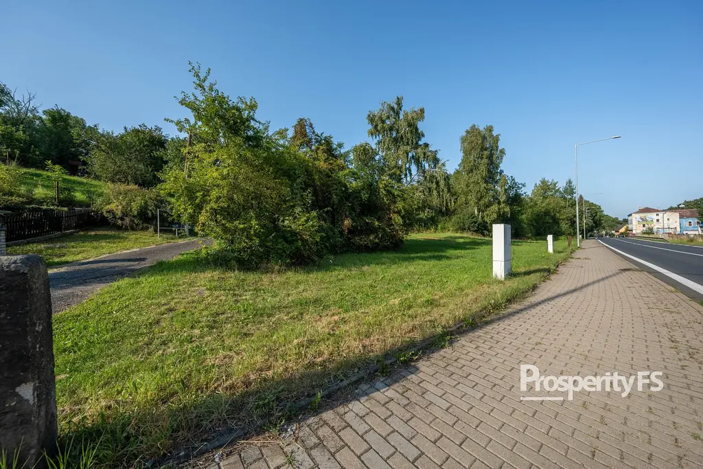 Pozemek je mírně svažitý a nachází se v blízkosti hlavní komunikace, což zajišťuje dobrou dopravní dostupnost.