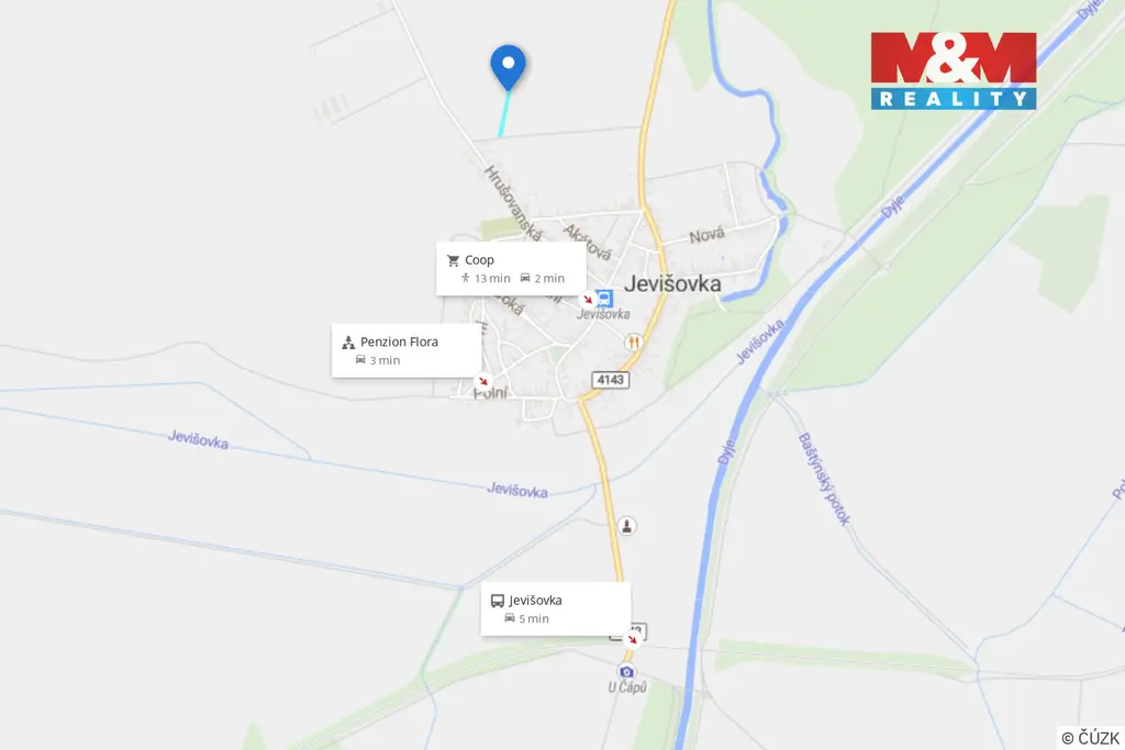 Nabízíme k prodeji pozemek evidovaný na listu vlastnictví č. 133 v katastrálním území Jevišovka, parcela č. 1064, o celkové výměře 2 000 m². Šířka pozemku činí přibližně 10 metrů.