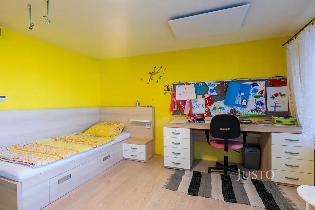 Dům se prodává vybavený nábytkem, který je vyrobený na míru, včetně kuchyňské linky s lednicí a s vestavěnými elektrospotřebiči sklokeramická deska, trouba, myčka, mikrovlnná trouba a digestoř zn. Midea.