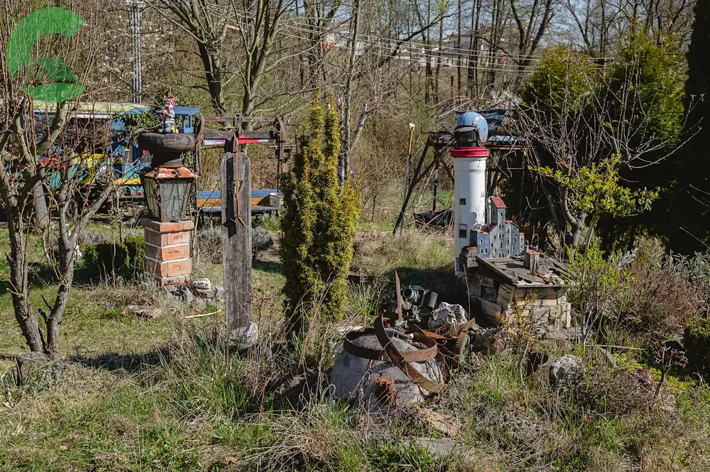 Současný majitel vtiskl zahradě jedinečný charakter. Na pozemku vznikl harmonický prostor propojující vzrostlou zeleň, osázené dřeviny, přírodní zákoutí a množství originálních detailů s uměleckým rukopisem.